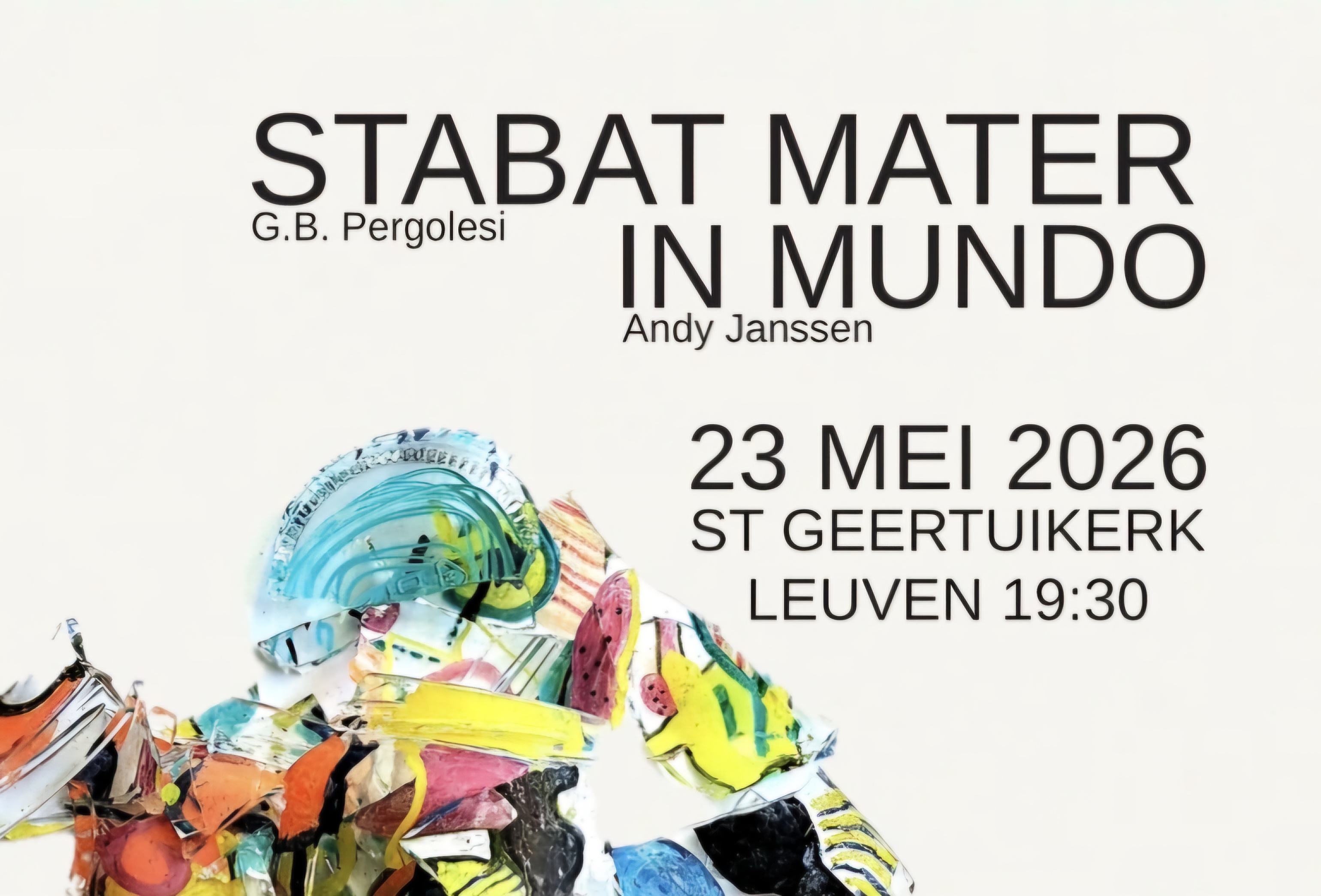 U bent van harte welkom in dit concert met het 'Stabat Mater' van G. B. Pergolesi, en de nieuwe compositie van Andreas Janssen op een tekst van Bas Van Damme: 'Stabat Mater in Mundo'